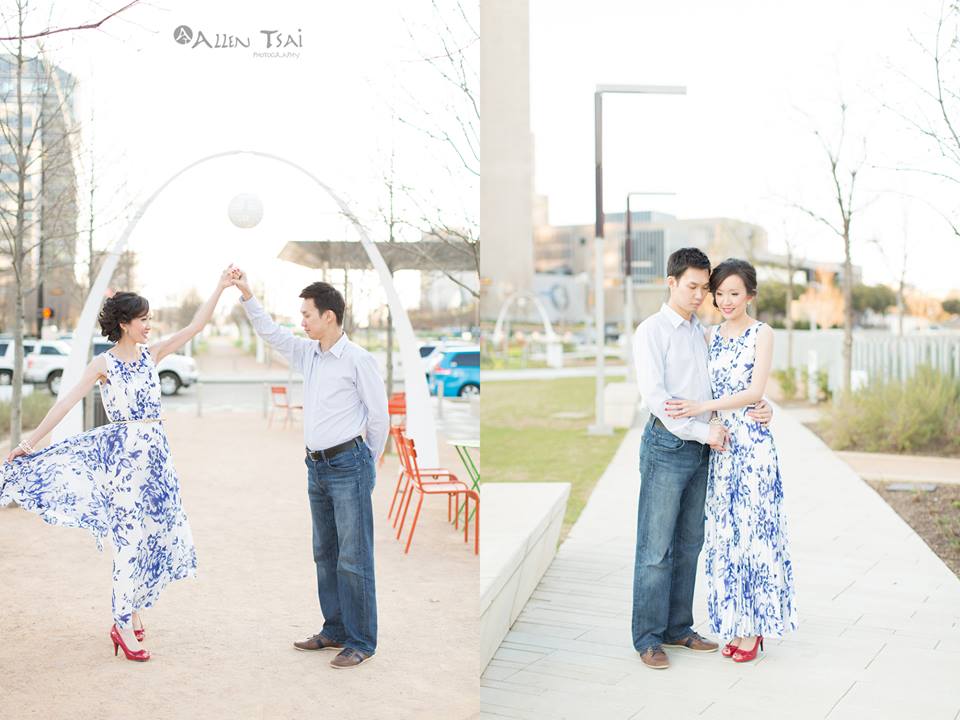 I love stylish couples…. and Vicky & Daniel are just that! These recent Dallas transplants are tying the knot in their native Southern California this Spring and are working with the lovely and talented Allen Tsai Photography! Their engagement shoot took place at a few of my favorite places all over town – The Dallas Arboretum, Klyde Warren Park and Nasher Sculpture Center.