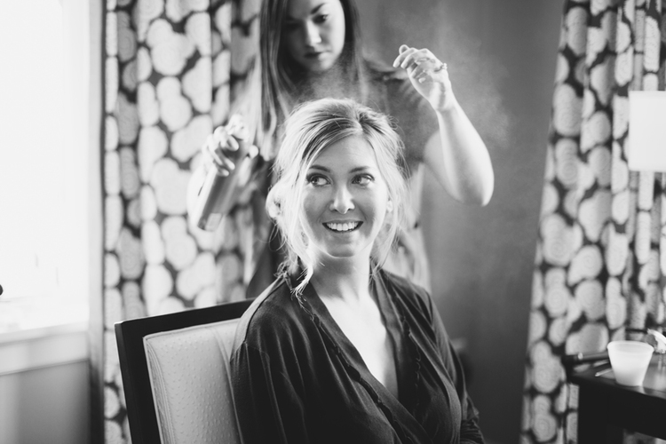 Vicky’s makeup is defined but classic and soft in a palette of cool grey and pinks, and I used a 1-inch barrel curling iron to give her shoulder length hair tons of voluminous curls and pinned it up for a side-swept updo. (style note :: the gold & pink gown she is wearing … totally couture! The fabric was imported from France and the gown was hand sewn just for her – so glam!