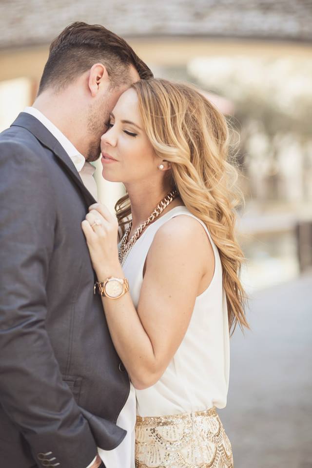 Lauren is one of my oldest childhood friends, so of course I was thrilled when she came to me for her engagement session makeup & hair! She wanted something natural but glamorous that would look great at her outdoor shoot at the canals of Las Colinas with Brandi Burkett Photography. So we used a neutral, warm palette of shades of gold and bronze on her eyes, peachy-coral on her cheeks and lips and big, loose, tousled waves in her hair with lots of volume.