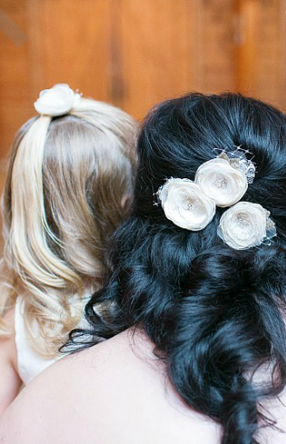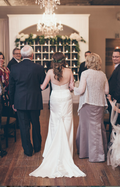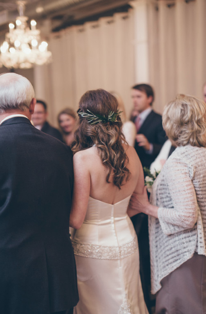 So we did just that! Pretty, smooth cream foundation, a little bronze and coral pop on her cheeks, taupe on her eyes and loads of mascara, with a pinky-natural pout and she was ready to go down the aisle. But! Let’s not forget that hair!!! I LOVE when my brides opt for braids! Courtney straightened her naturally corkscrew-curly hair and we did soft, smooth waves and two braids on either side that met in the back for an infinity crown braid. We topped it off from with a few fern leaves (from Bows & Arrows). Her overall look, a little Grecian, a little boho and whole lot of natural, gorgeous, goodness! Stunning images by NBarrett Photography. Enjoy!